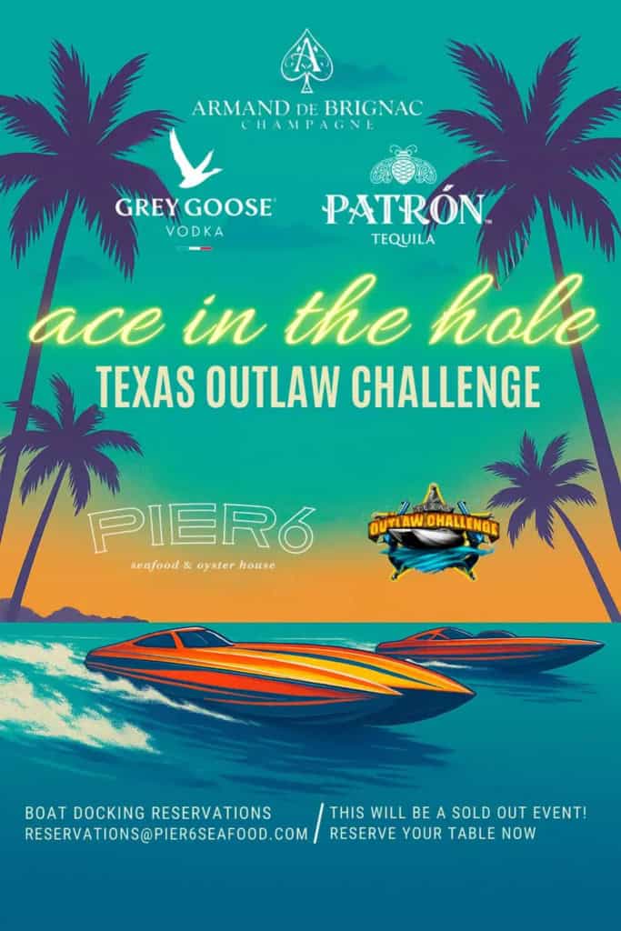 "Ace In The Hole " Dockside Champagne Party Date: Saturday, June 27, 2026Time: 4PM-7PMLocation: Pier 6 (Dockside) 113 6th Street San Leon, TX 77539